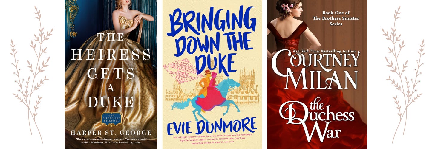Bringing Down the Duke by Evie Dunmore - Want your romance mixed with a bit of women’s suffrage and political intrigue? Annabelle is working to recruit men of influence to the suffrage cause and sets her sight on the Duke of Montgomery as her target. But she must not give in to the deep attraction they have for each other. Intrigue!